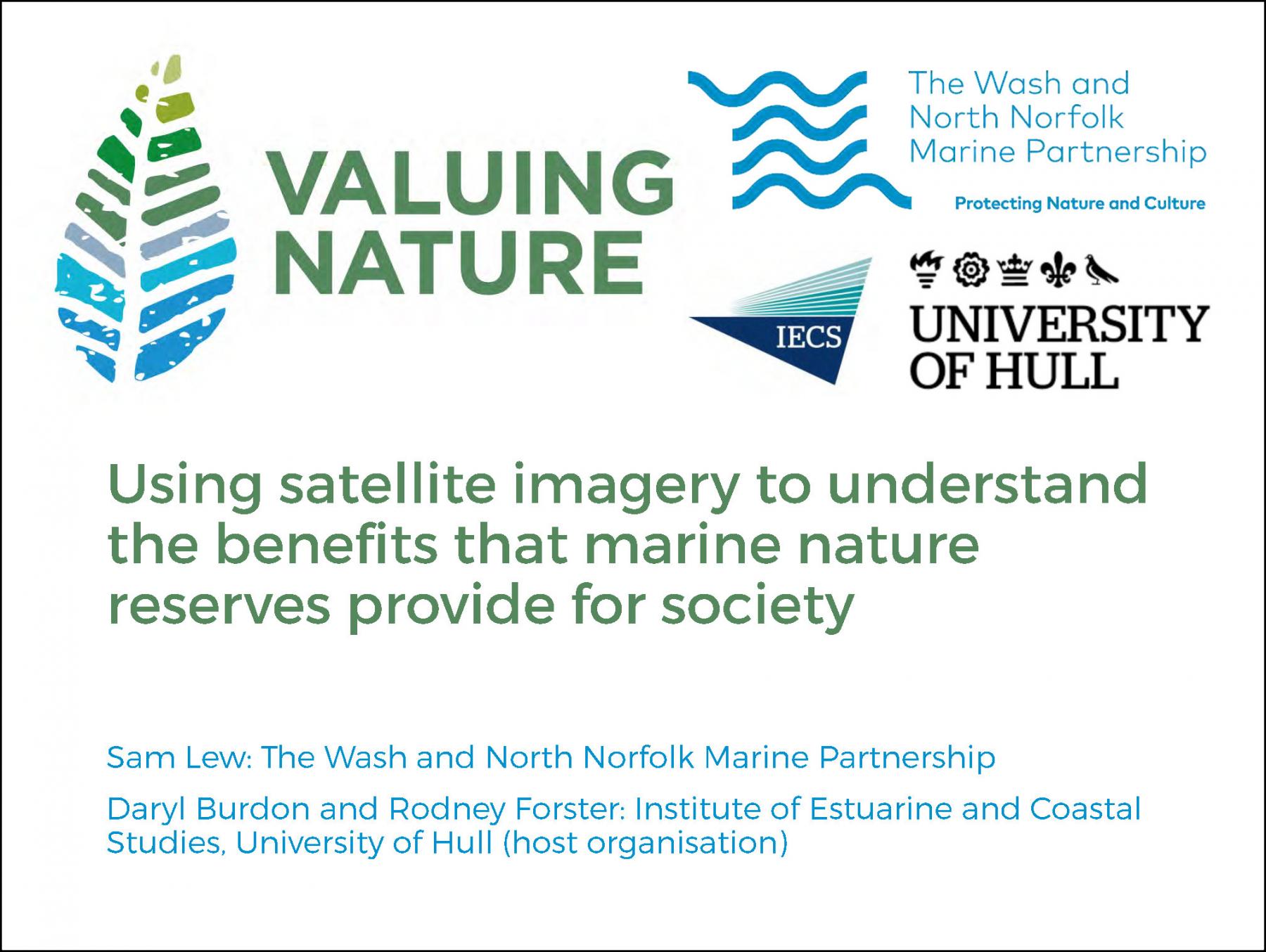 This project aimed to develop tools, skills and resources to enhance the balanced protection of marine nature and culture, with research techniques piloted at The Wash and North Norfolk coast. Satellite tools were used to map regions of saltmarsh and its sub-features. A practitioner’s toolkit has been produced giving an entry level tutorial for the satellite-based classification methods used in this project. A workshop was held with local community saltmarsh specialists to identify saltmarsh sub-features and the benefits provide to society, using satellite imagery. Further work is to develop techniques to objectively compare stakeholder with satellite-based classification schemes. Workshop outputs can be accessed from this report including an interactive PDF for saltmarsh sub-features and societal benefits. Satellite tools provide an easy to use and open-access resource for mapping marine features and are an attractive engagement tool for relationship development across a range of marine management groups and local community members.